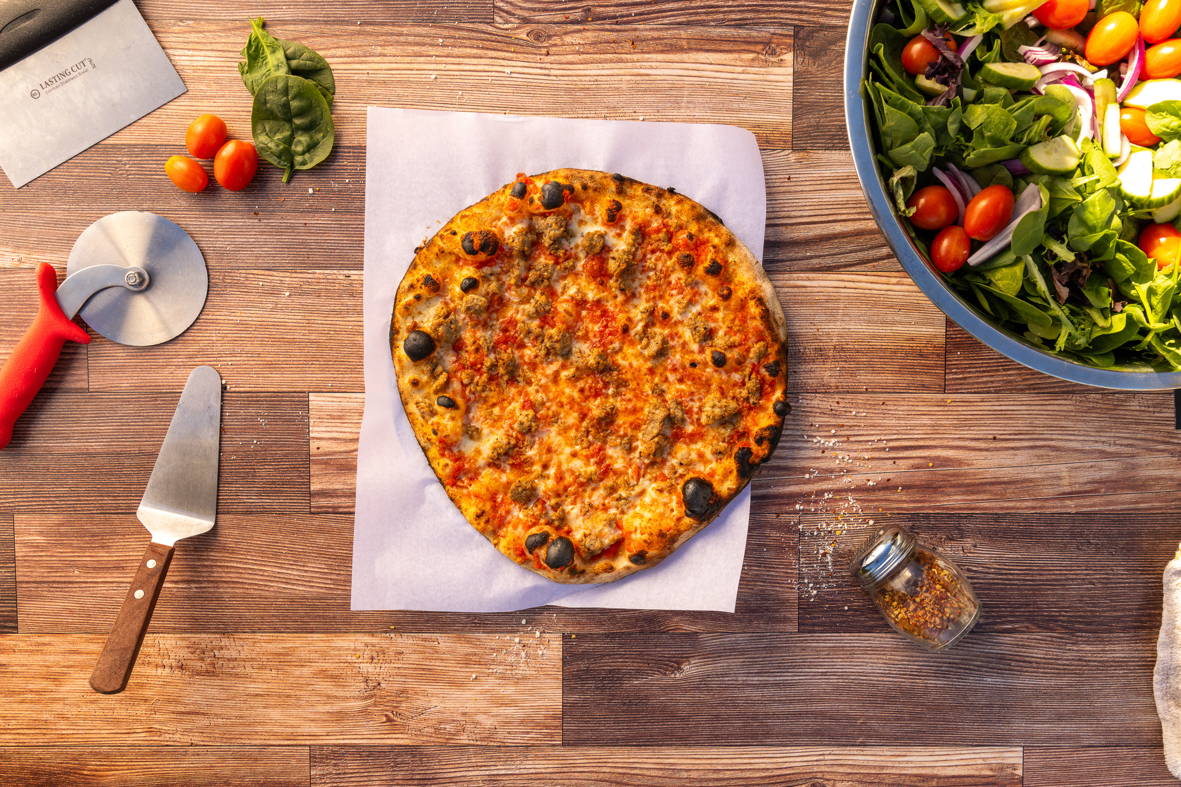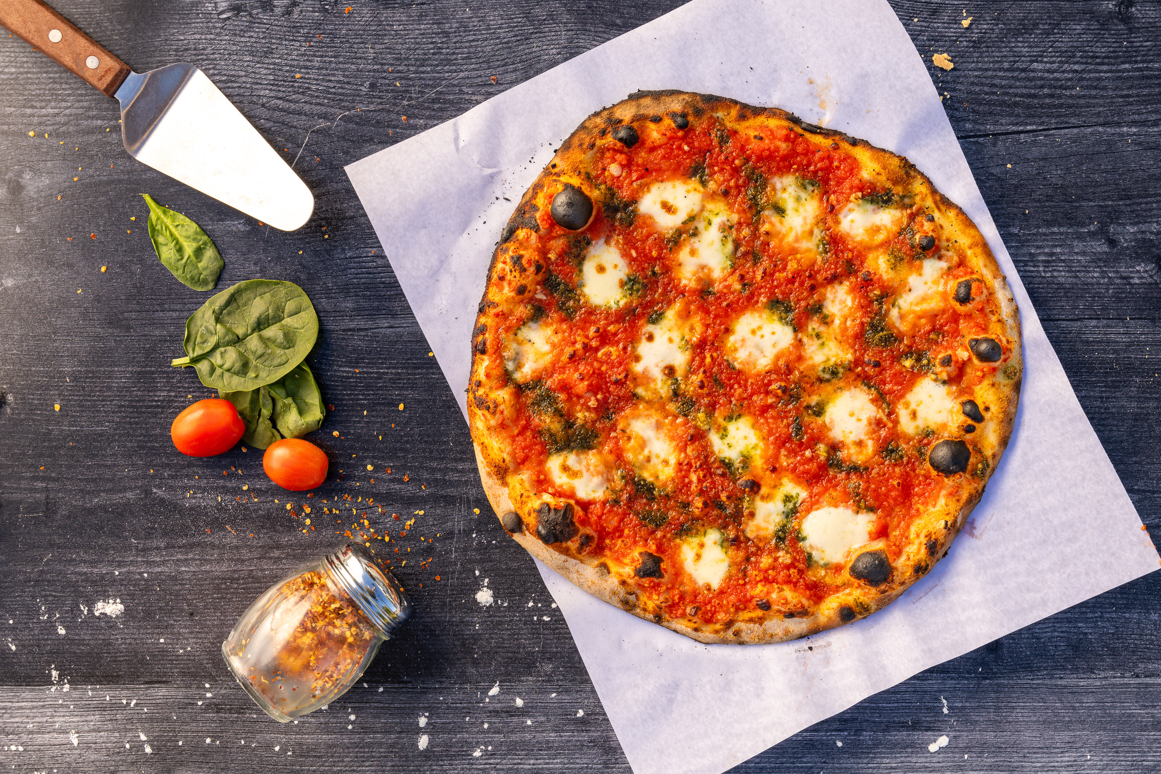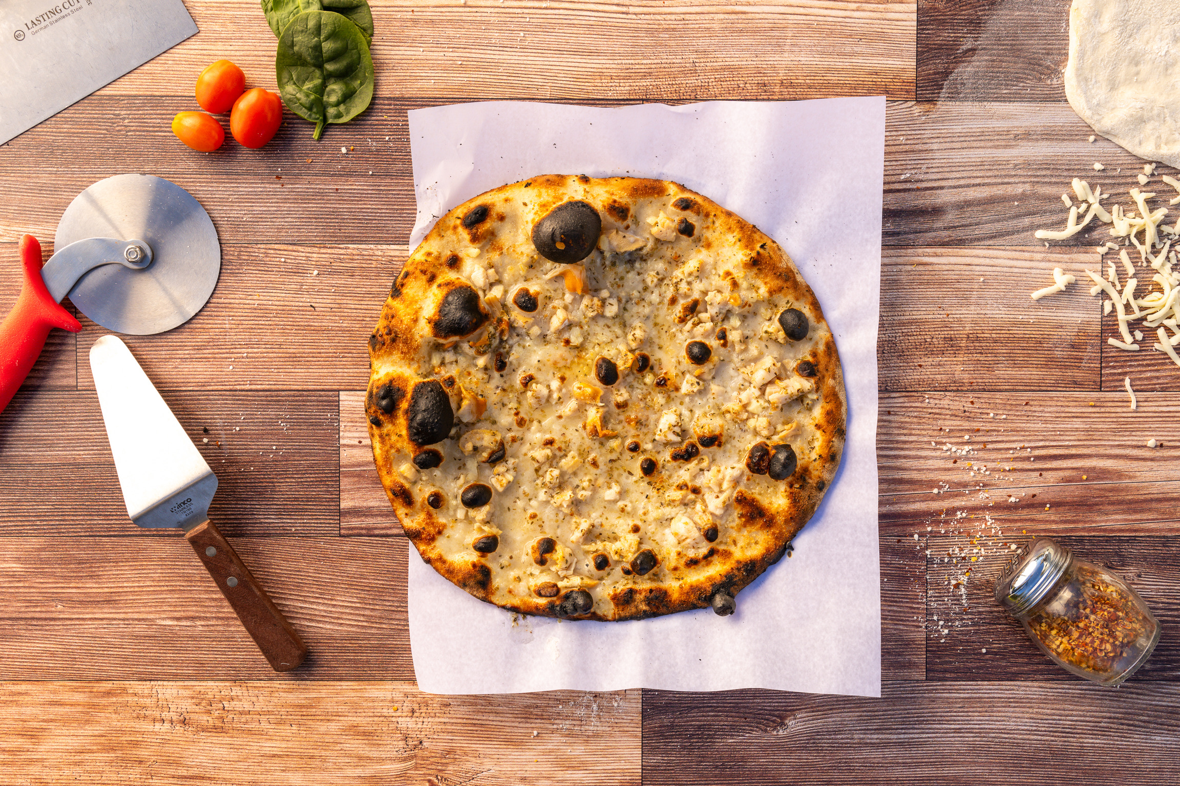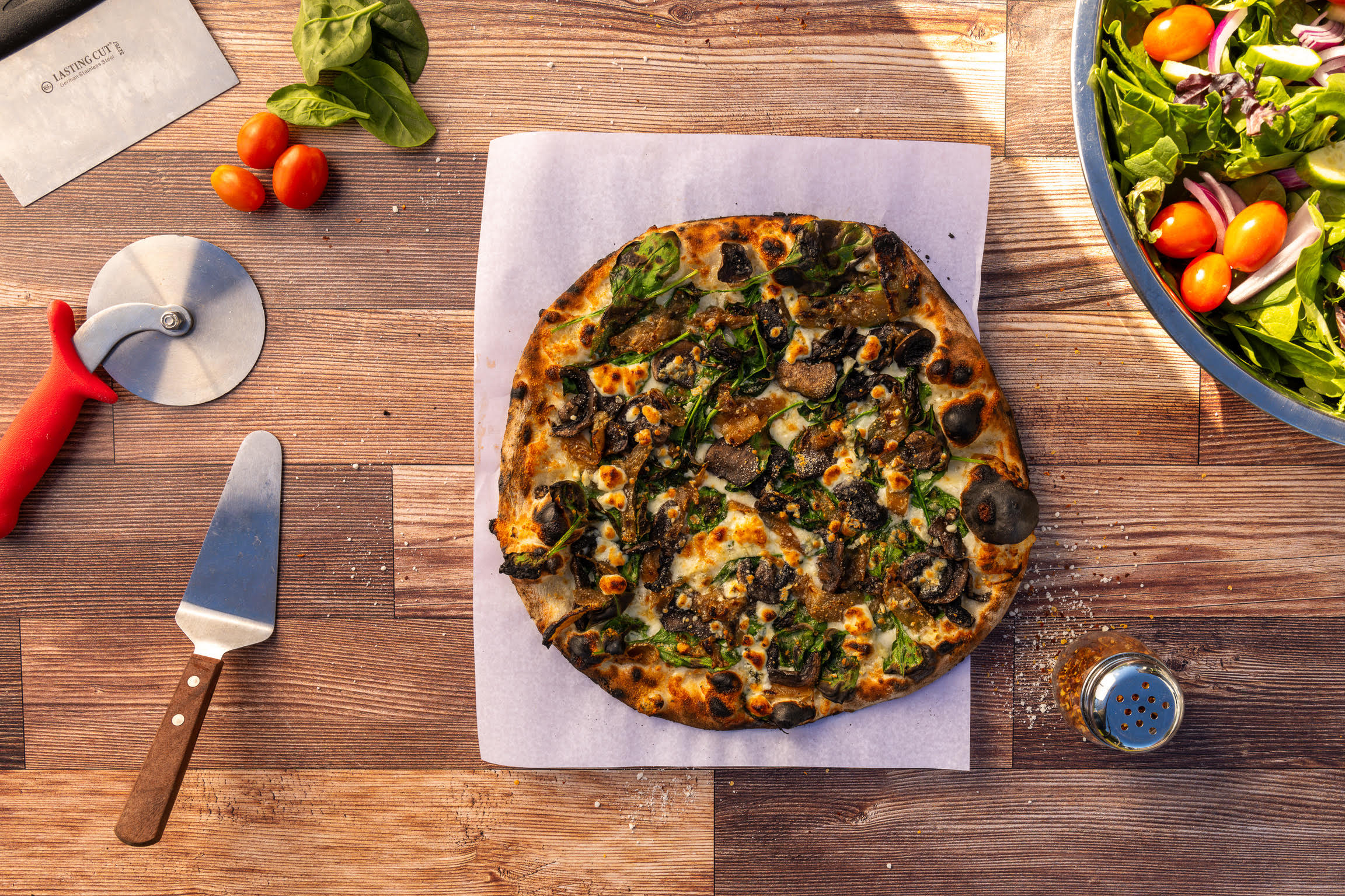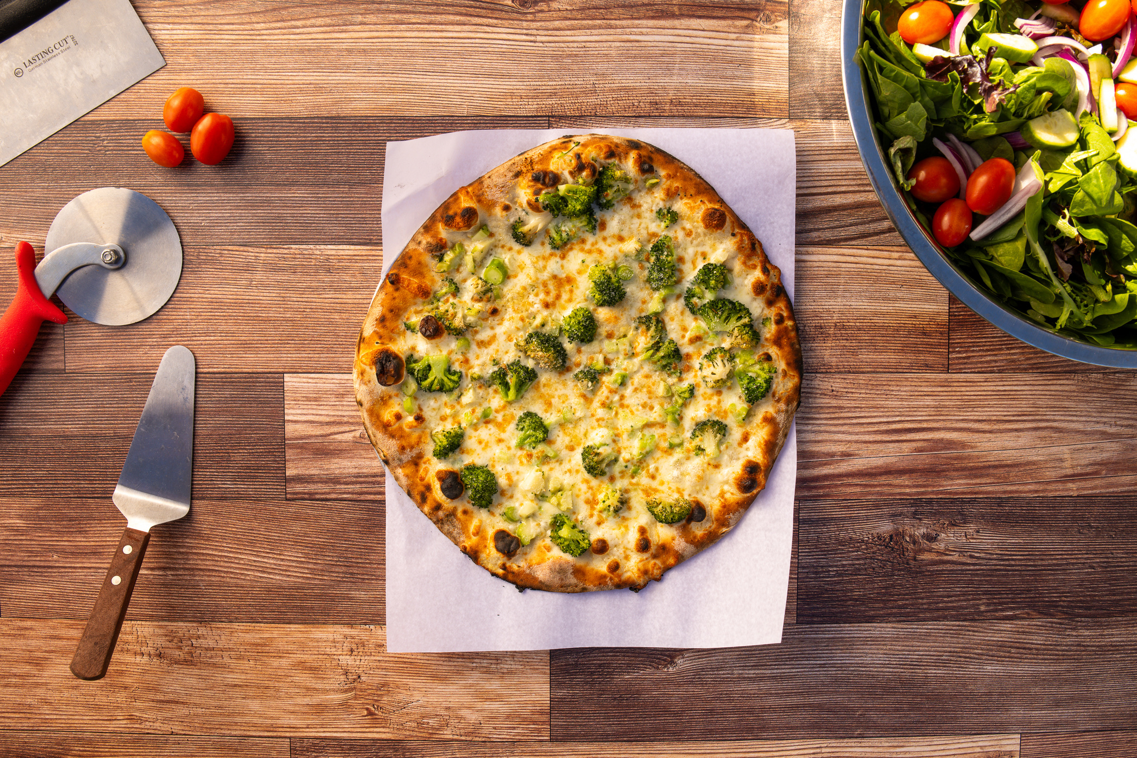 Caramelized onion, peppers, mushrooms, spinach, eggplant, mashed potato, garlic, broccoli, broccoli rabe, fresh tomato, calabrian chilis
